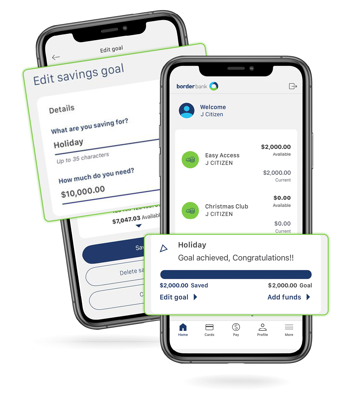 Set yourself specific savings goals and link them to your accounts, then monitor your progress with visual tracking.