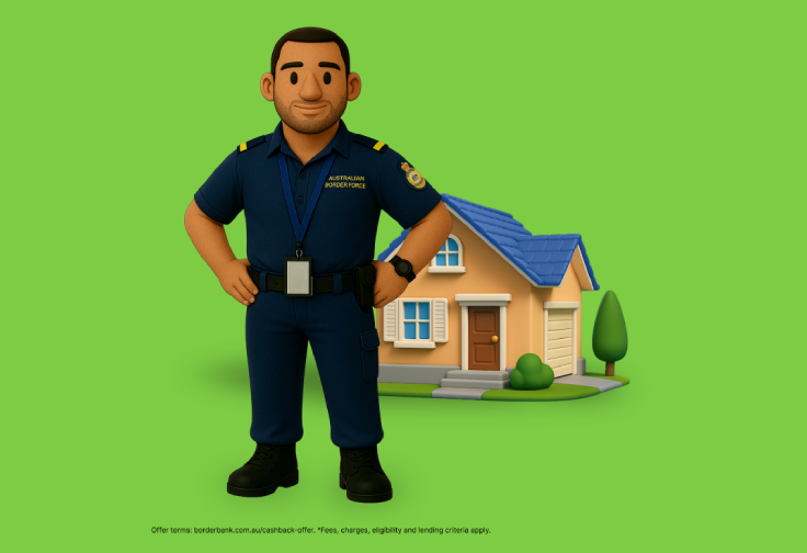 †Terms and conditions apply. Standard fees, charges, eligibility and lending criteria apply to all loan products as detailed in Border Bank’s current Schedule of Fees and Charges and Home Loan Terms and Conditions available at branches and online. This offer is subject to credit assessment approval and Border Bank’s standard lending criteria. A Financial Services Guide (FSG) is available at all branches, on our website, and upon request. Border Bank reserves the right to request additional documentation to verify eligibility.