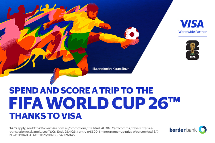 Credit provided by Border Bank. A division of, Police Bank Ltd. ABN 95 087 650 799. AFSL/Australian Credit Licence No. 240018. Fees, charges, terms & conditions apply. Border Bank lending criteria apply. For more information visit borderbank.com.au/important-documents. You can find our Visa Credit Card Terms and Conditions and Visa Debit Card Terms and Conditions available online or from any of our branches. Border Bank is not liable for any acts or omissions that may arise in relation to this competition.